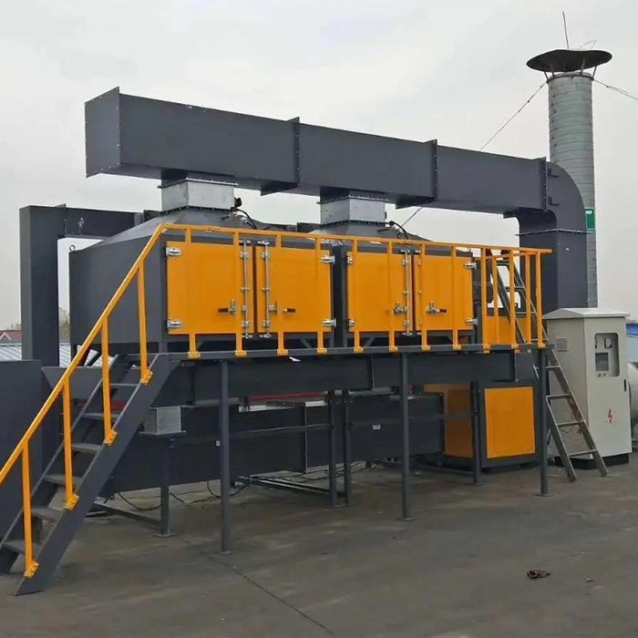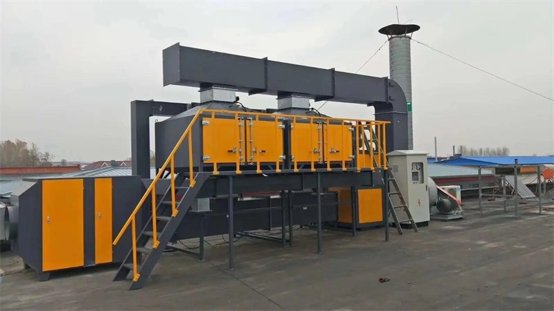 催化燃燒裝置原理是在催化劑的作用下,使有機廢氣中的碳氫化合物在溫度較低的條件下迅速氧化成水和二氧化碳,達到廢氣處理的目的。催化燃燒過程是在催化燃燒裝置中進行的。有機廢氣先通過熱交換器預熱到200~400℃,再進入燃燒室,通過催化劑床時,碳氫化合物的分子和混合氣體中的氧分子分別被吸附在催化劑的表面而活化。由于表面吸附降低了反應的活化能,碳氫化合物與氧分子在較低的溫度下迅速氧化,產生二氧化碳和水。