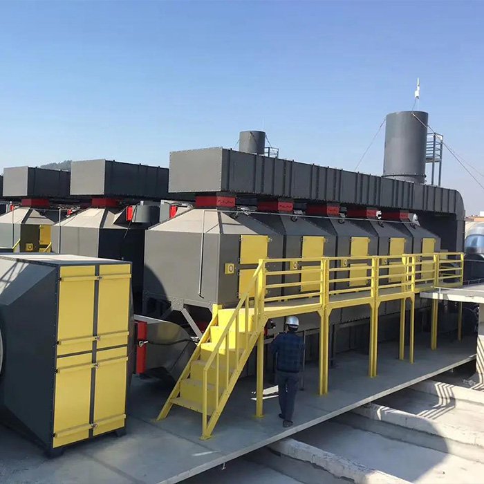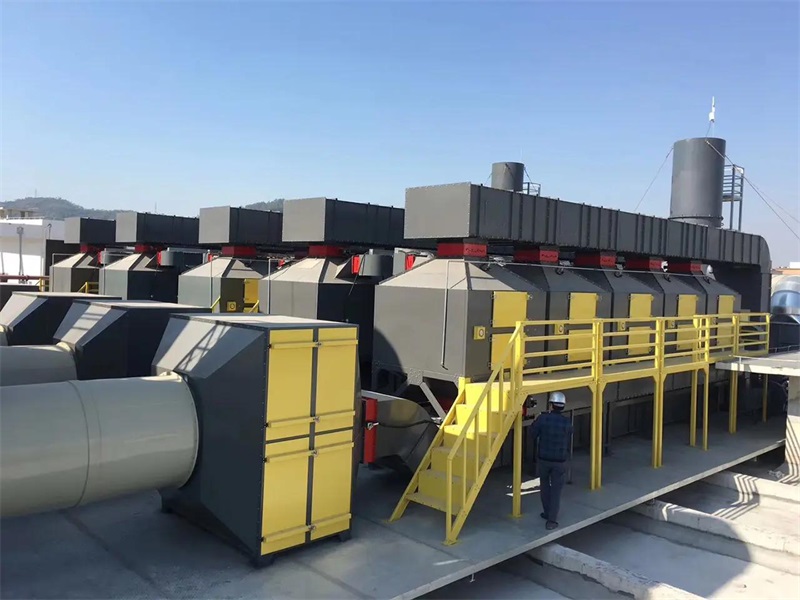 催化燃燒裝置原理是在催化劑的作用下,使有機廢氣中的碳氫化合物在溫度較低的條件下迅速氧化成水和二氧化碳,達到廢氣處理的目的。催化燃燒過程是在催化燃燒裝置中進行的。有機廢氣先通過熱交換器預熱到200~400℃,再進入燃燒室,通過催化劑床時,碳氫化合物的分子和混合氣體中的氧分子分別被吸附在催化劑的表面而活化。由于表面吸附降低了反應的活化能,碳氫化合物與氧分子在較低的溫度下迅速氧化,產生二氧化碳和水。